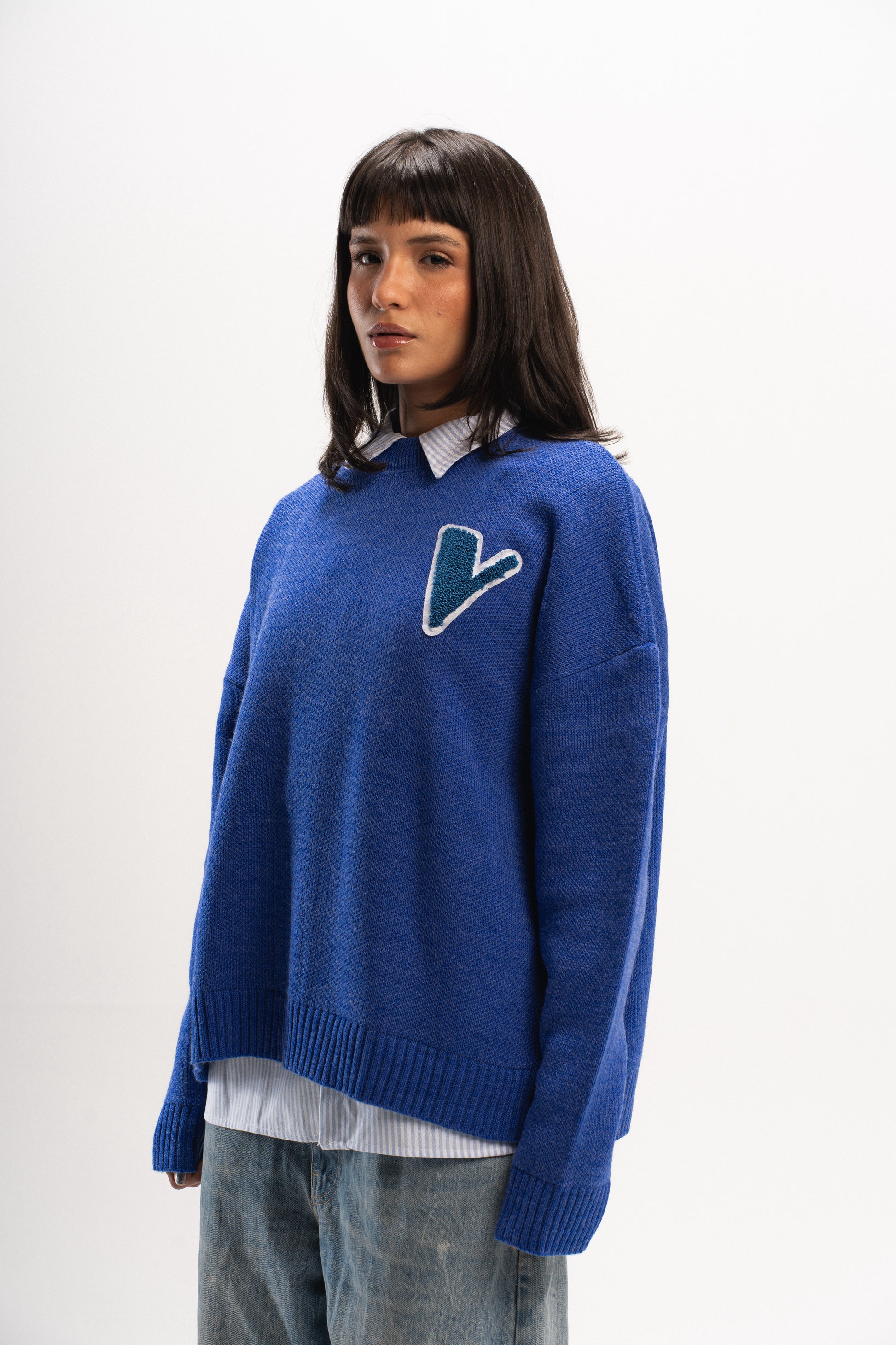 “V” KNIT SWEATER IN ROYAL BLUE