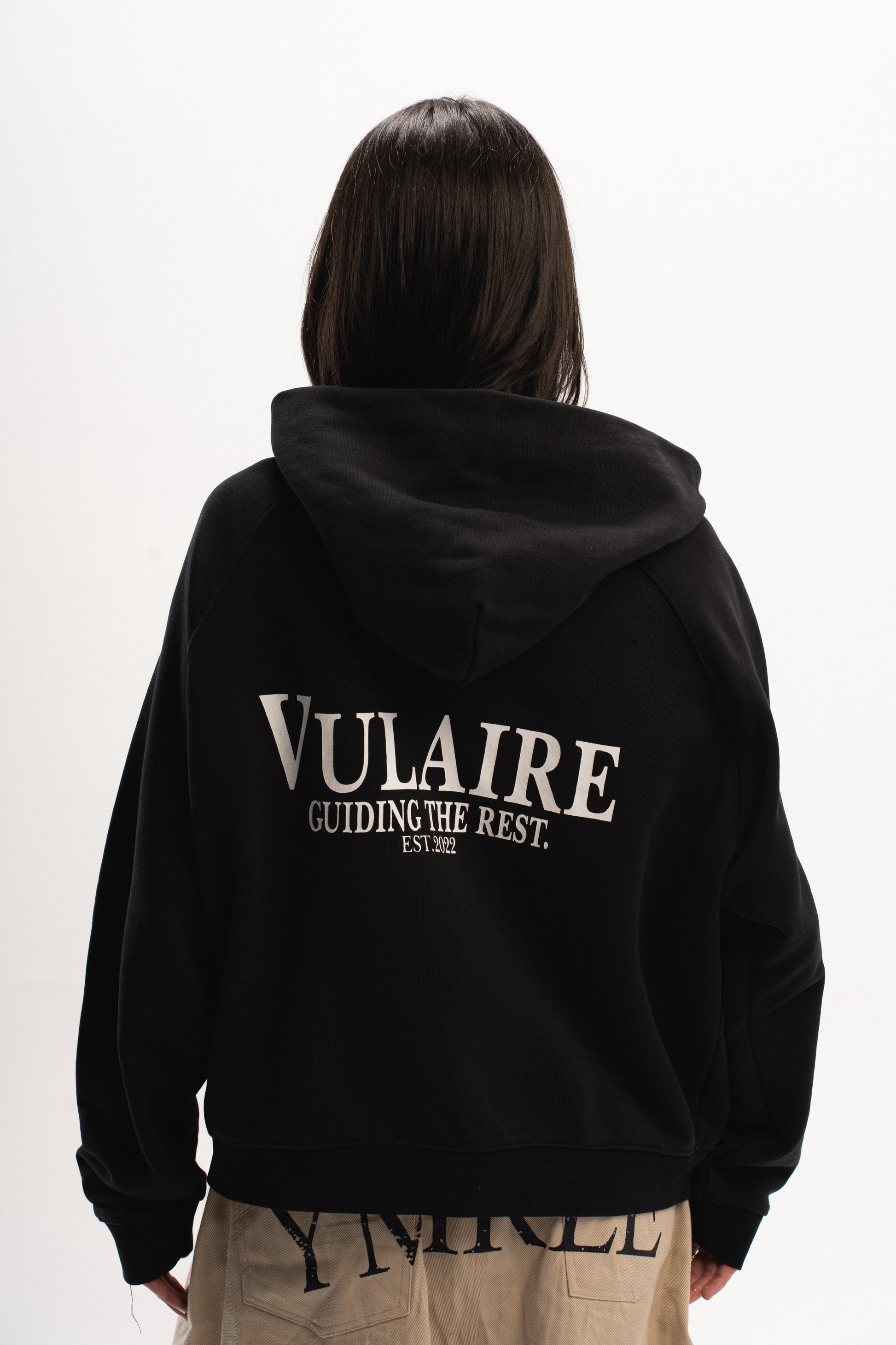 Signature “V” logo pins accent each pocket corner, adding a refined touch of detail. Both the front and back feature the “Vulaire Guiding The Rest” print — a statement of vision and individuality.